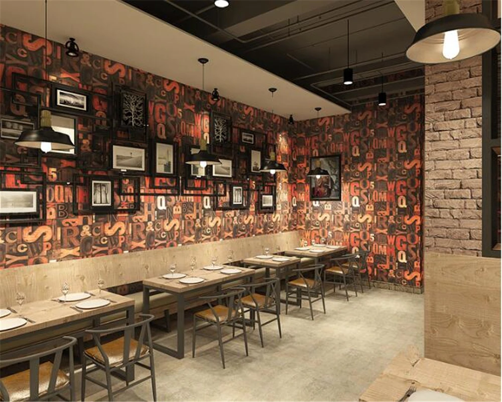 Avoir Beibehang Mode Simple Anglais Lettre Papier Peint Bar Restaurant